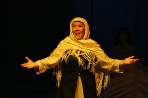 Режиссер-постановщик – народный артист Республики Казахстан Бекпулат Парманов. Этот спектакль является украшением репертуара театра и пользуется огромной любовью зрителей, многие из которых выходят из зала со слезами на глазах. В основе сюжета — судьба простой кыргызской женщины её жизнь, полная лишений. Толгонай рассказывает о своей первой и единственной любви, о рождении трёх сыновей, о проклятой войне, которая отняла у неё родных людей. Это исповедь не только о своей судьбе, но и многих других людях: о себе, о времени своём, обо всей нашей жизни…