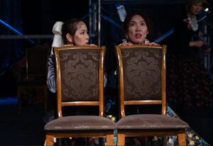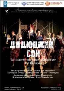 “Дядюшкин сон” – это провинциальный анекдот, талантливо развернутый Достоевским в целую галерею провинциальных характеров и нравов. Это одно из самых блистательных сатирических произведений Ф.М. Достоевского, в котором писатель беспощадно срывает маски с салонного лицемерия, пошлости, деспотизма, прикрывающихся красивыми и высокопарными словами. В спектакле много гротеска, фарса, персонажи предстали рельефно, заостренно и эксцентрично.