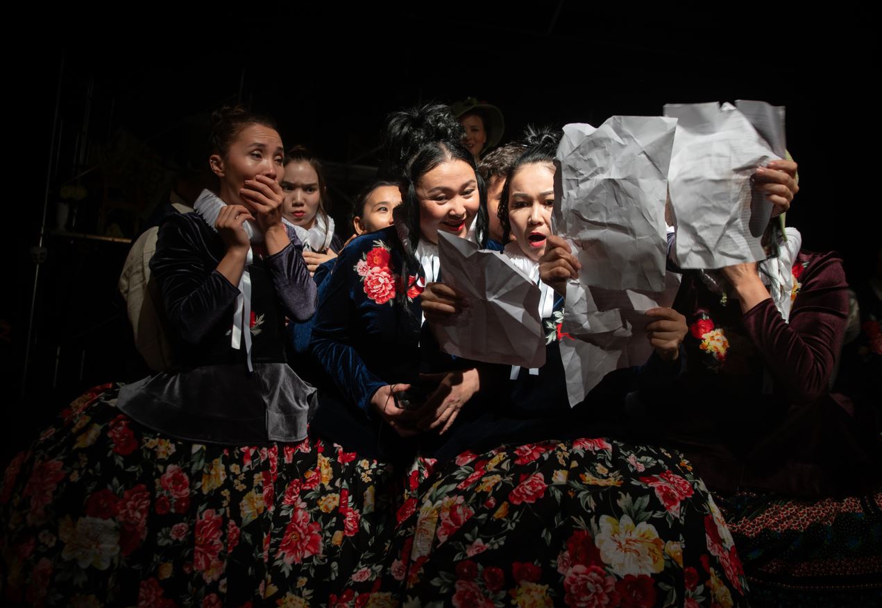 Режиссер Уланмырза Карыпбаев, сценограф Садыр Ниязакунов, художник по костюмам Зухра Мукамбетова, хореограф Резида Гаянова (Санкт-Петербург).
