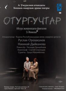 Пьеса «Стулья» была написана в 1951 году. Сам Ионеско определял жанр своего произведения, как трагический фарс. Пьеса стала одним из символов театра абсурда и ставилась множество раз по всему миру, приобретя статус культовой. «Стул — это то, что осталось от человека, когда он на минуточку вышел. Стул все еще хранит его тепло, повторяет изгибы и переживания тела, но без человека он ничто». Впервые знаменитое произведение прозвучит на кыргызском языке в переводе известной поэтессы, заслуженного деятеля культуры КР Алымкан Дегенбаевой.